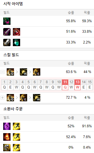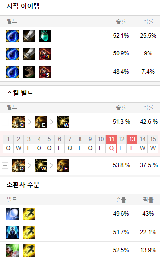 스킬 빌드로는 Q E W 순으로 마스터 해줍니다.