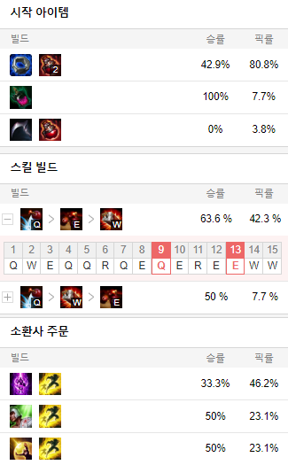 스킬 빌드로는 Q E W 순으로 마스터 해줍시다.