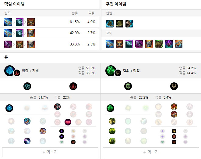 룬으로는 어둠의 수확 + 침착 룬을 들어 상대방을 학살해주세요.