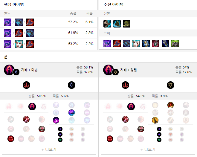 룬으로는 어둠의 수확 + 침착 룬을 들어 상대방을 학살해주세요.