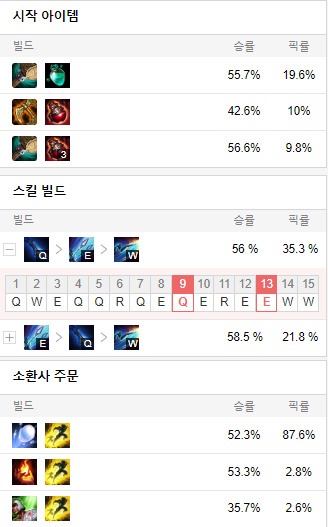 스킬 빌드로는 E Q W 순으로 마스터 해줍시다.