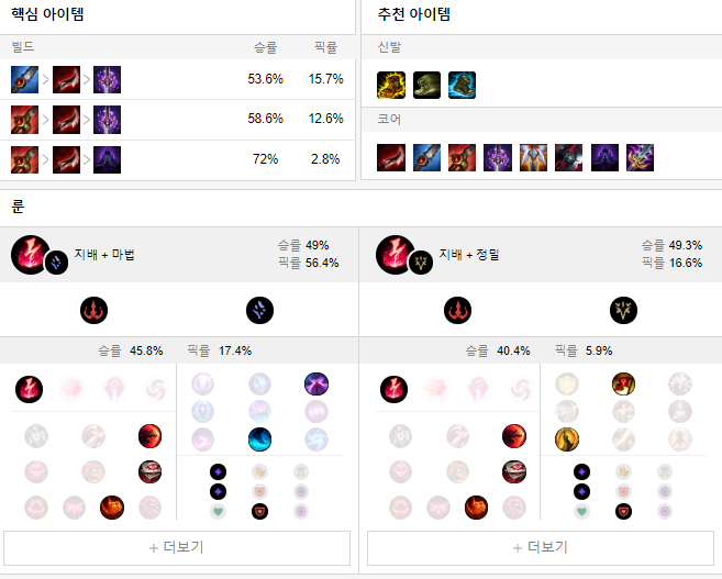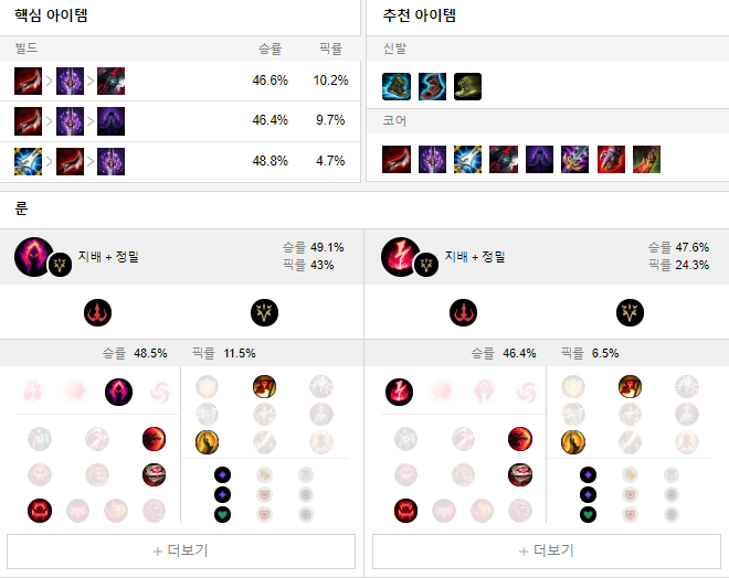 룬으로는 어둠의 수확 + 승전보 룬을 들어 상대방을 학살해주세요.