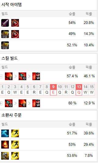 스킬 빌드로는 E Q W 순으로 마스터 해줍니다.