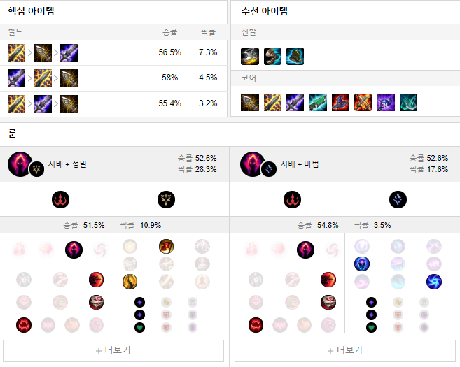 룬으로는 치속 + 지배 룬을 들어 상대방을 학살해주세요.