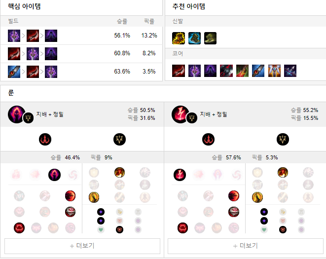 룬으로는 정복자 + 지배 룬을 들어줍니다.