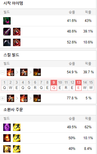 스킬 빌드로는 Q E W 순으로 마스터 해줍시다.