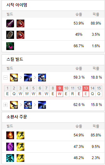 스킬 빌드로는 W E Q 순으로 마스터 해줍시다.
