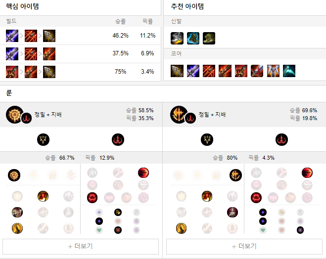 룬으로는 집공 + 지배 룬을 들어 상대방을 학살해주세요.