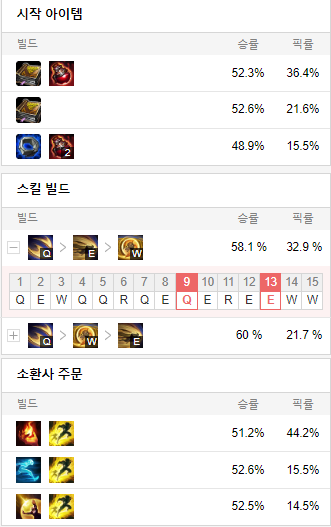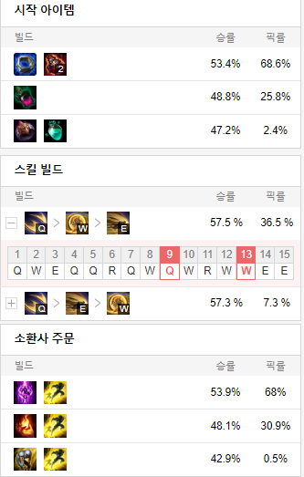스킬 빌드로는 Q W E 순으로 스킬을 찍어줍니다.