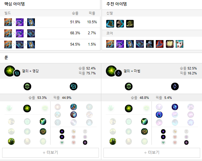 룬으로는 여진과 승전보를 들어 한타기여도가 높을 경우 캐리가 완성됩니다.