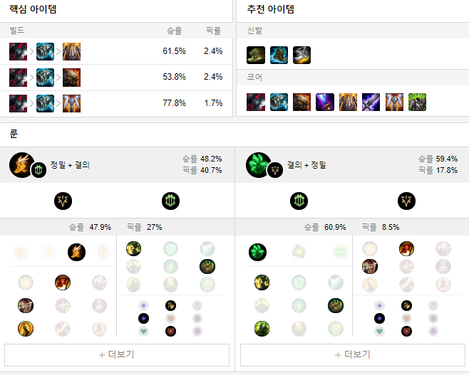 룬으로는 어둠의 수확 + 승전보를 들어 캐리로 이끌어줍니다.
