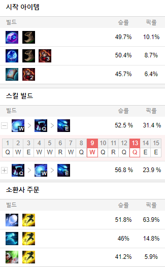 스킬 빌드로는 W Q E 순으로 마스터 해줍시다.