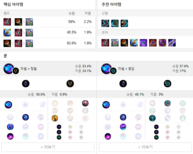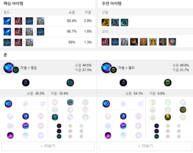 룬으로는 어둠의 수확 + 마법 룬을 들어 상대방을 학살해주세요.