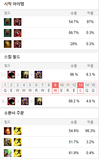스킬 빌드로는 W E Q 순으로 마스터 해줍시다.