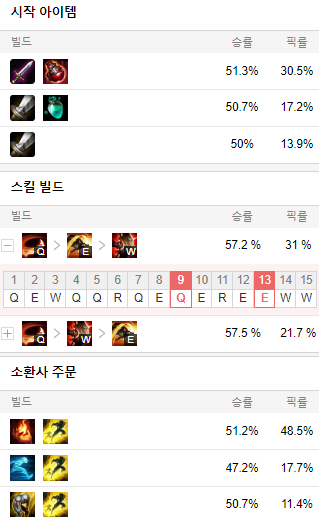스킬 빌드로는 Q E W 순으로 마스터 해줍시다.