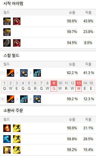 스킬 빌드로는 Q W E 순으로 마스터 해줍니다.