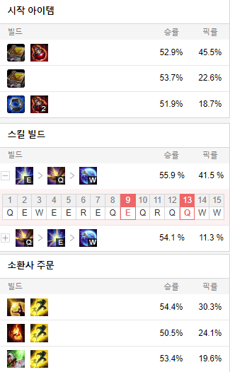 스킬 빌드로는 E Q W 순으로 마스터 해줍시다.