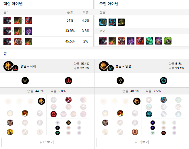 상대 챔피언에 따라 유동적으로 올려주시면 됩니다.