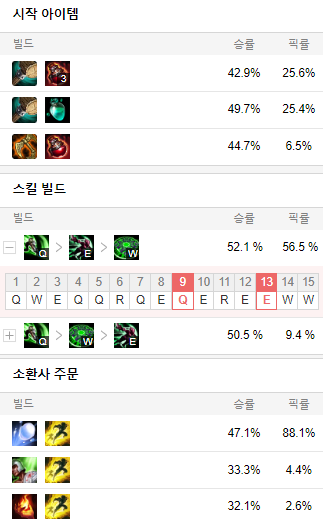 스킬 빌드로는 Q E W 순으로 마스터 해줍시다.