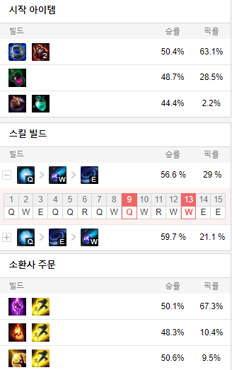 스킬 빌드로는 Q W E 순으로 마스터 해줍시다.