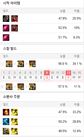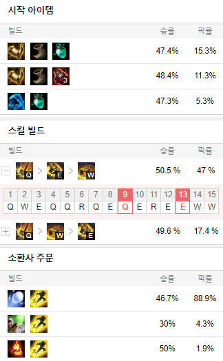 스킬 빌드로는 Q E W 순으로 마스터 해줍시다.