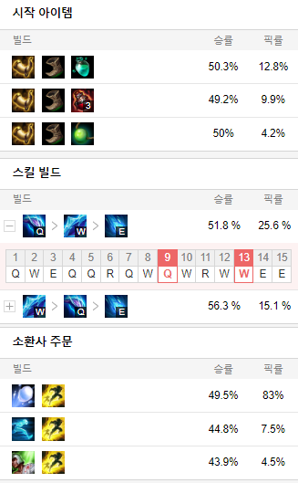 스킬 빌드로는 Q W E 순으로 마스터 해줍시다.