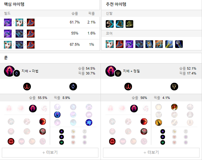 룬으로는 어둠의 수확 + 마법 룬을 들어줍니다.
