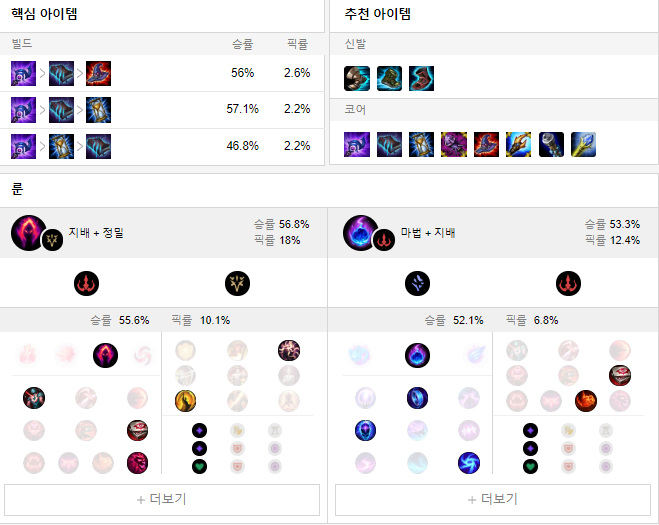 룬으로는 어둠의 수확 + 마법 룬을 들어 상대방을 학살해주세요.