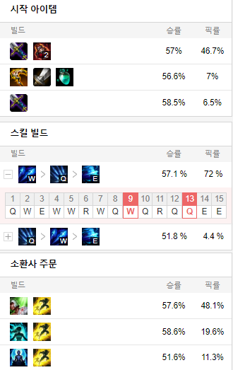 스킬 빌드로는 W Q E 순으로 마스터 해줍니다.